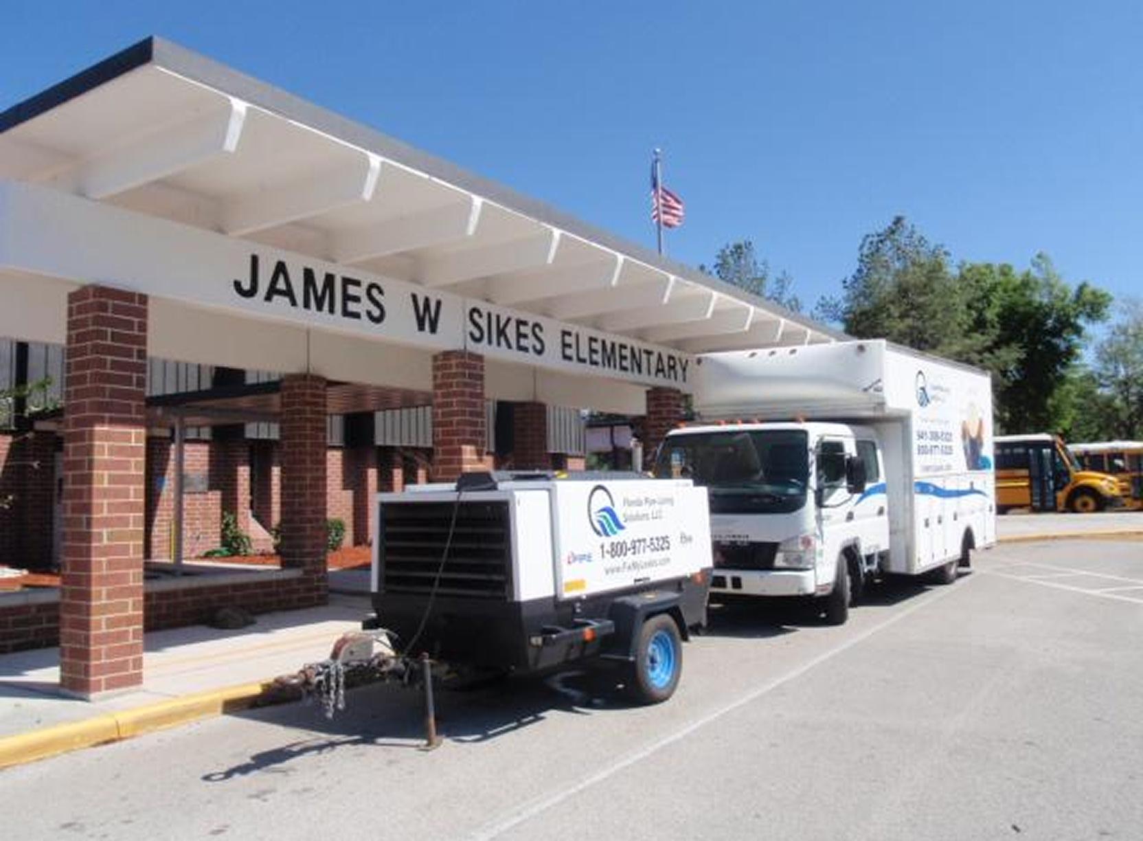 After doing their research and looking at their options, Polk County School officials chose the non destructive ePIPE® System from Florida Pipe-Lining Solutions. Holder of 8 Patents, this unique epoxy barrier coating system restores water pipes to a like-new condition without the destruction, mess, and remodeling associated with re-piping. The Senior Project Engineer from FPS surveyed the failing bathroom piping and planned the restoration. As Florida’s Leader in pipe restoration, FPS provides our clients the highest quality service, workmanship and safety in the industry. All FPS Technicians have the Jessica Lunsford Certification with Level 2 Security Clearance. Senior Restoration Tech, John Richards was Project Supervisor on the Sikes School project. John and his crew shut off the water supply, then used heated compressed air to clean the inside of the old piping. Then they installed the NSF approved ePIPE epoxy barrier coating to the inside of the water piping, providing a durable porcelain like finish that prevents leaks from returning, and stops lead from leaching into the water. After the epoxy lining was cured, the newly restored water piping was pressure tested and the entire system being serviced was put back on line.